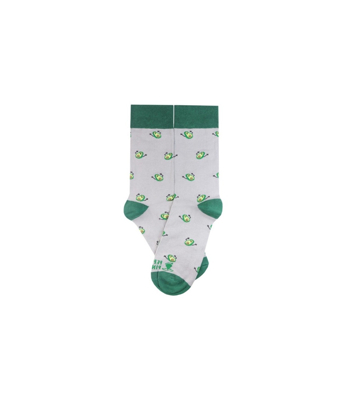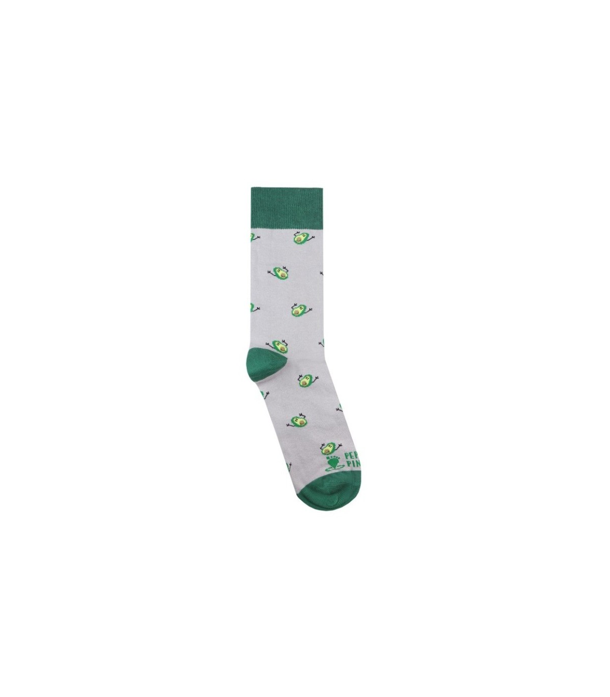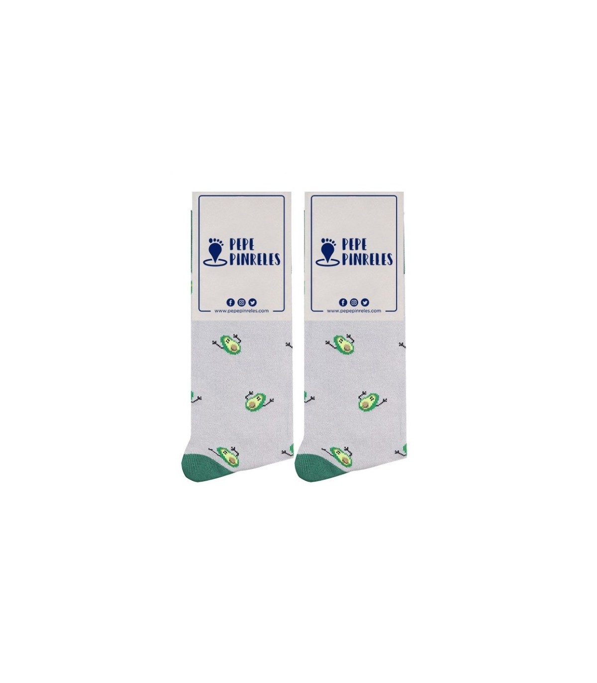 Calcetines con estampado de aguacates sobre fondo verde, ideales para un estilo fresco y moderno.