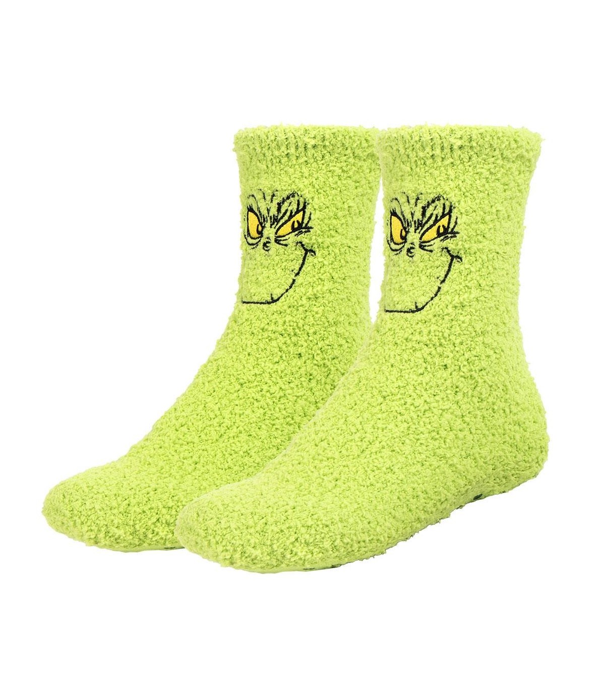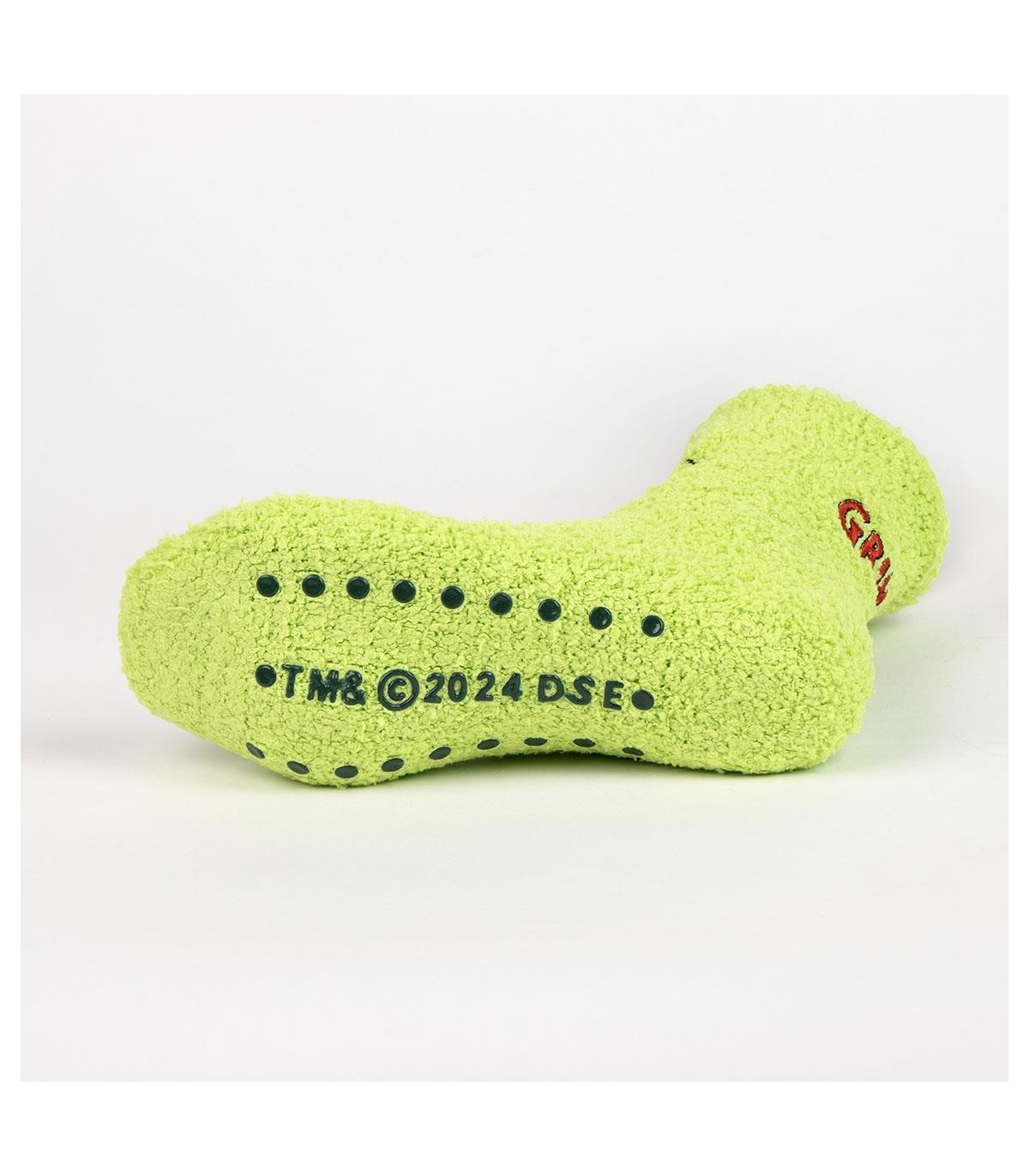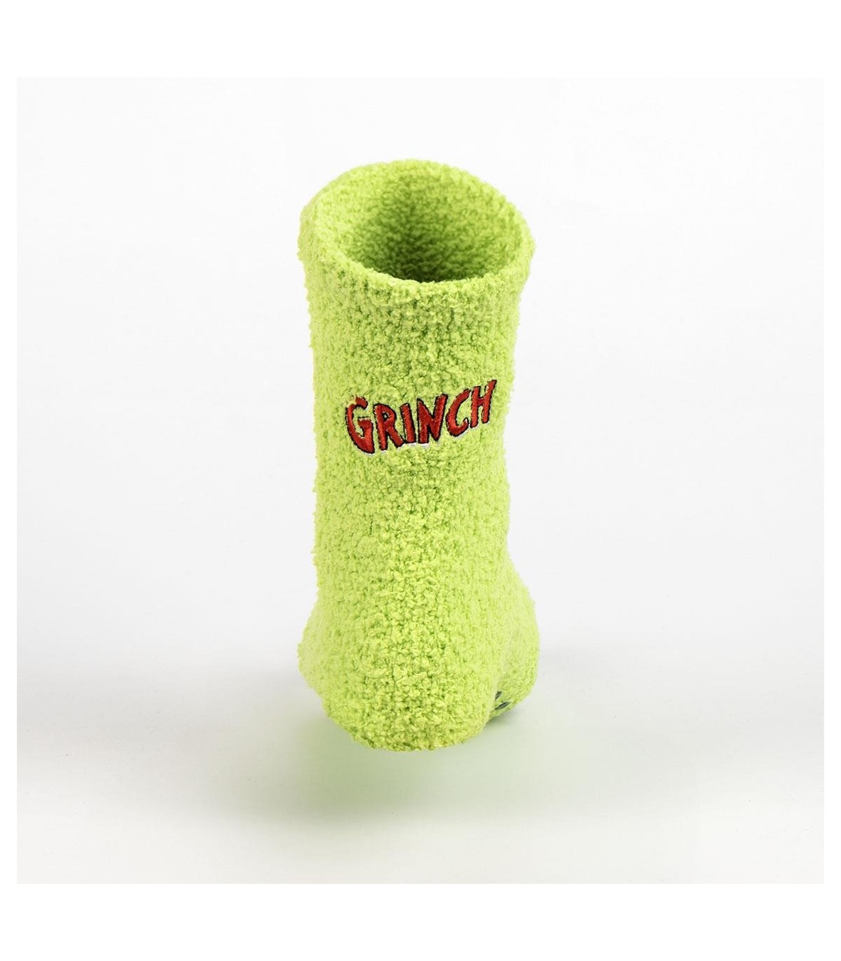 Calcetines antideslizantes de The Grinch con diseño 3D, brindando calidez y seguridad en invierno.