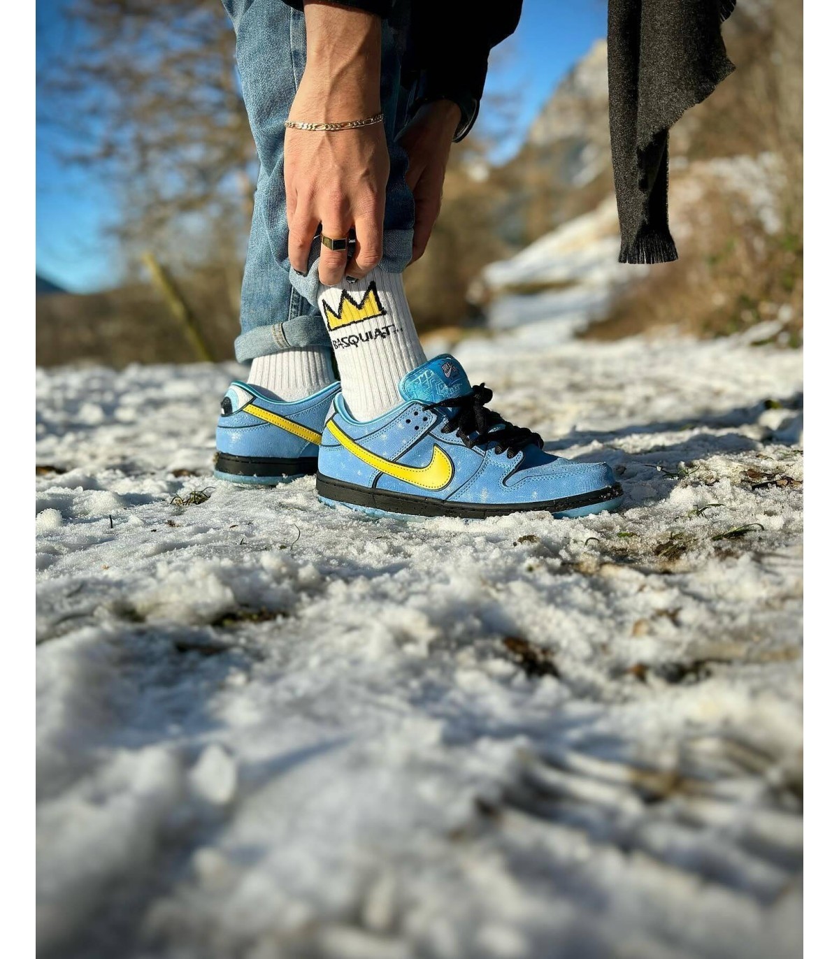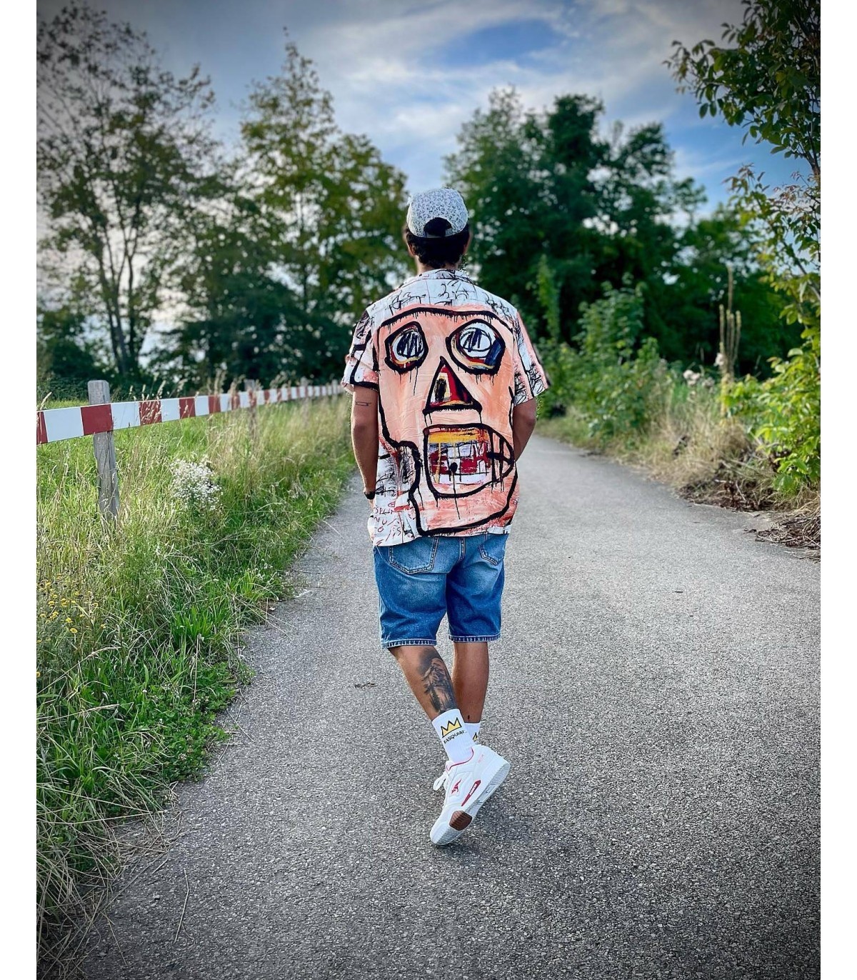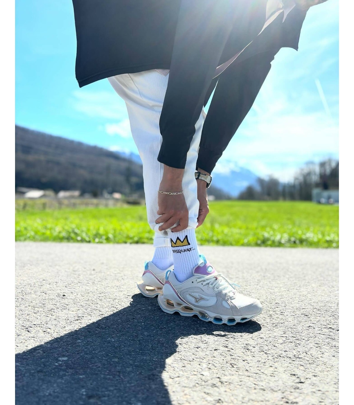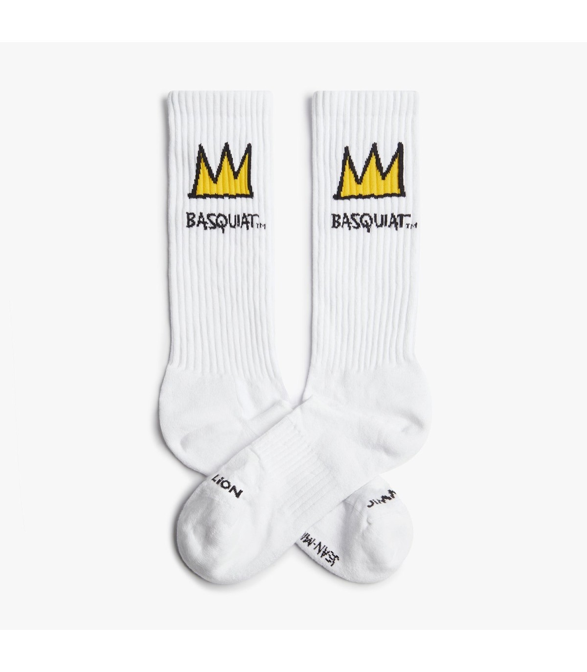 Calcetines deportivos de media caña con la icónica corona de Basquiat, ideales para añadir un toque artístico a tu look diario.