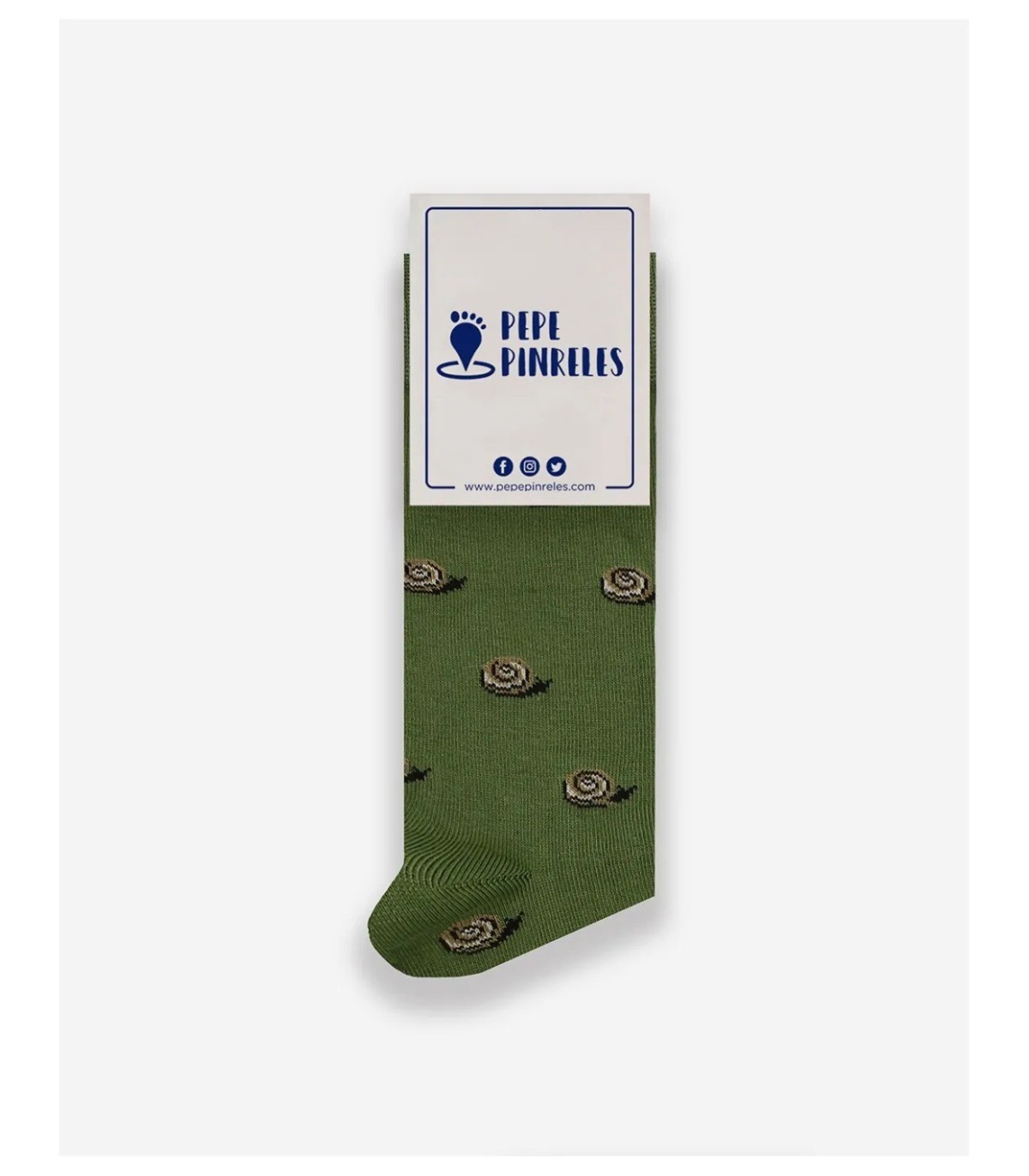 Calcetines en verde con dibujo de caracoles de Pepe Pinreles divertidos y originales, tanto para le día a día como para una ocasión especial