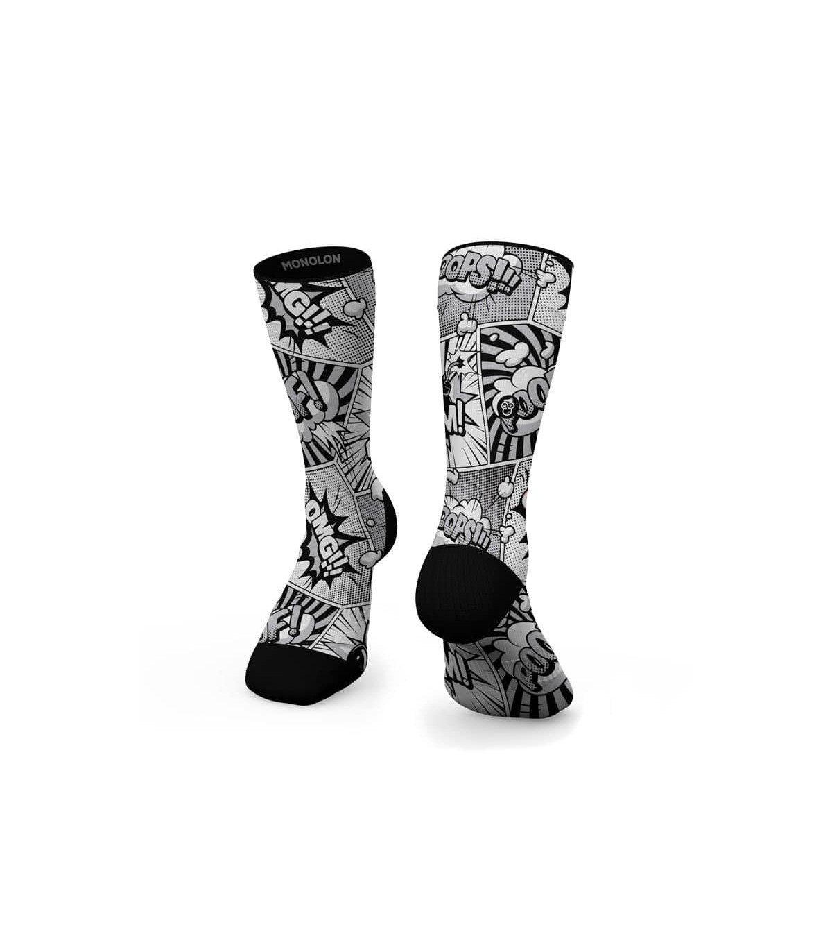 Calcetines deportivos con diseño de cómic retro en 360º, sin costuras y personalizables.