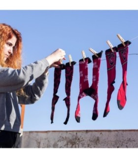 Calcetines largos de color rojo vibrante, adornados con un encantador estampado de corazones y la frase "contigo siempre lo que con nadie nunca". Diseñados para ofrecer comodidad y estilo en cada paso.