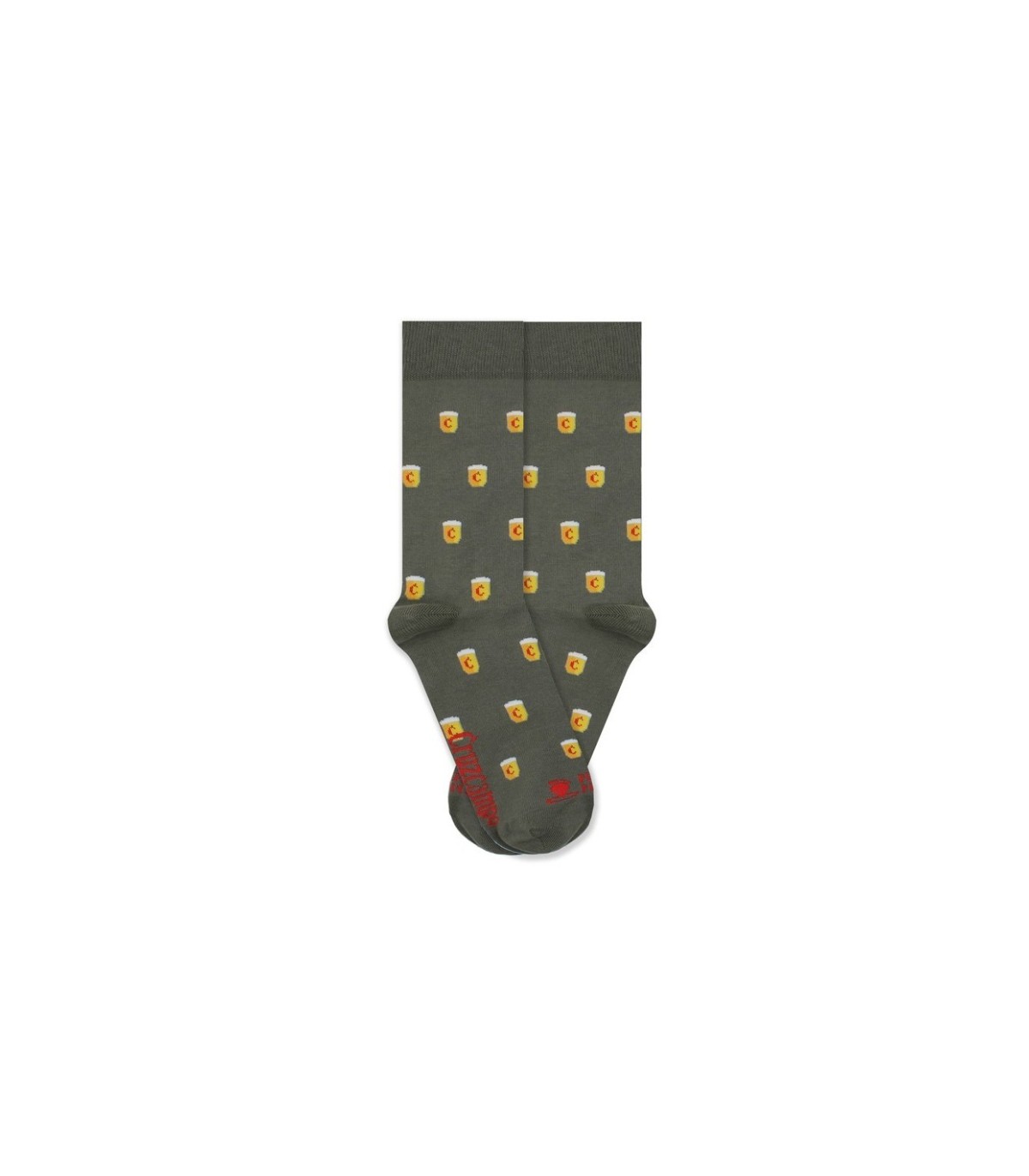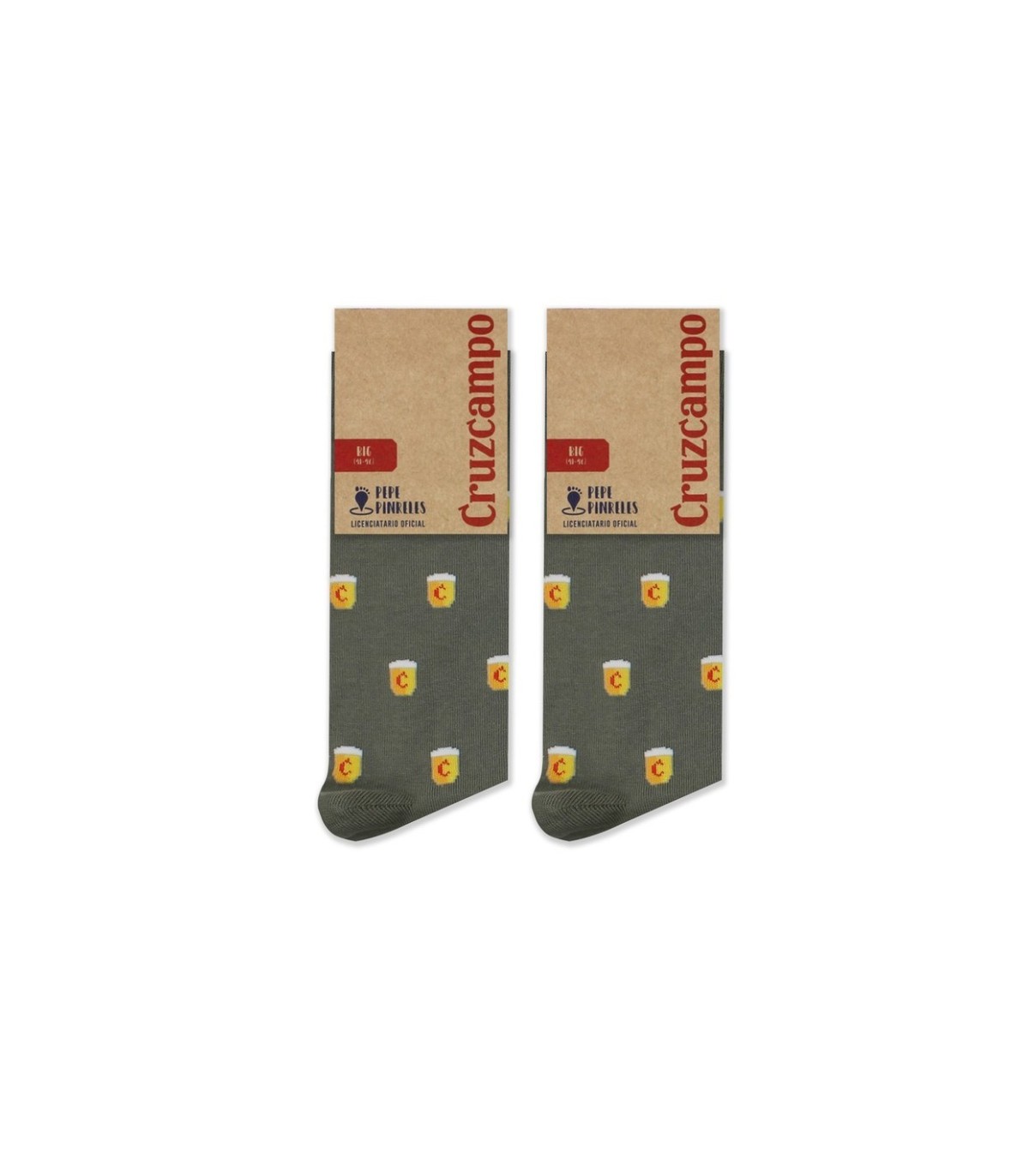 Calcetines con estampado de cañas de Cruzcampo, ideales para los aficionados a la cerveza y al estilo desenfadado.