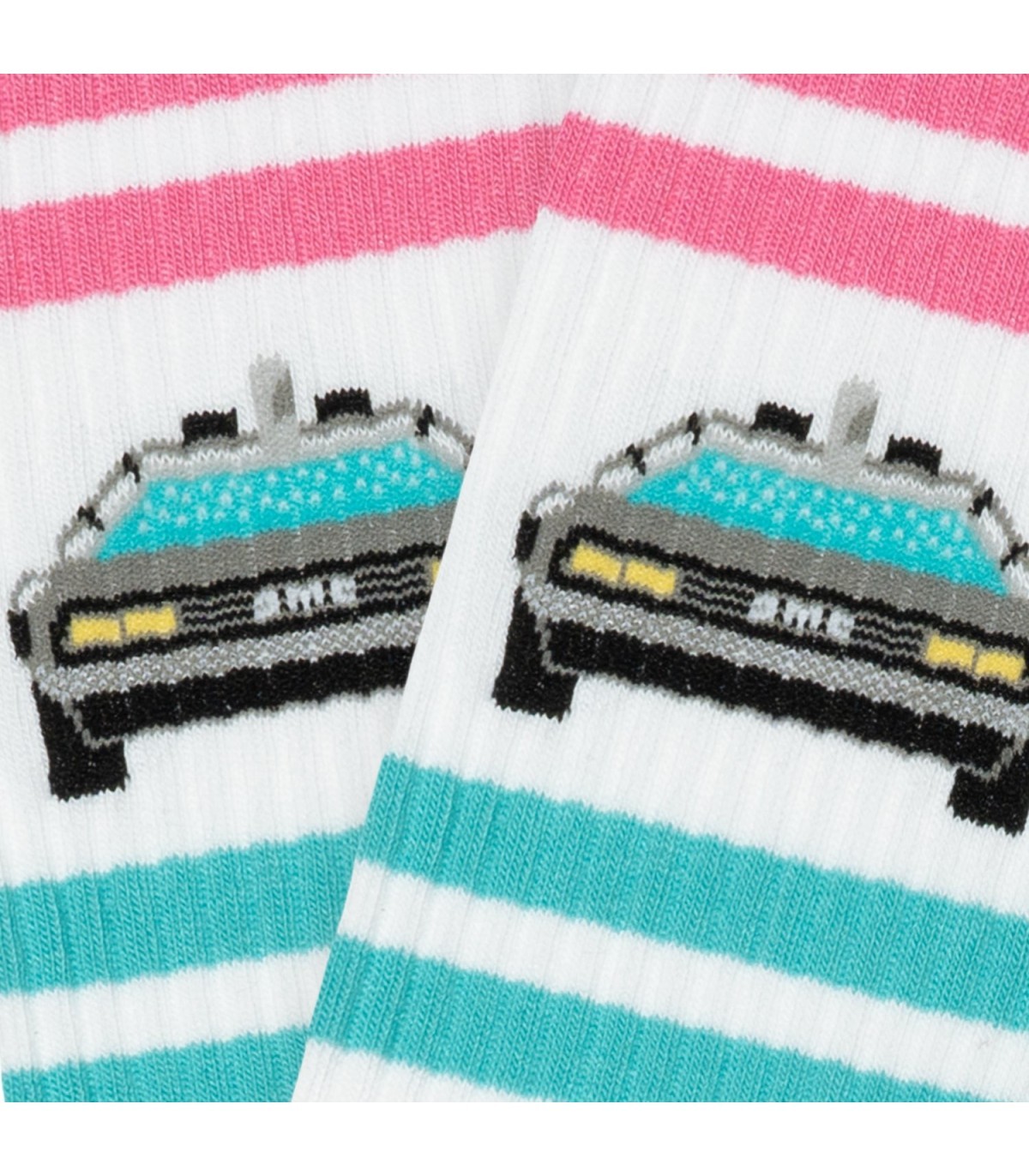 Calcetines deportivos de media caña con diseño del DeLorean de "Regreso al Futuro", combinando estilo retro y comodidad.
