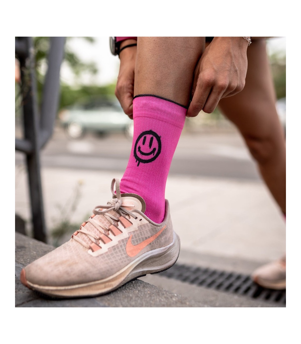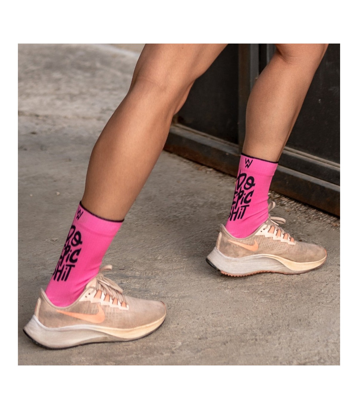 Calcetines deportivos fucsia con mensaje motivacional, cómodos y transpirables para tus entrenamientos.