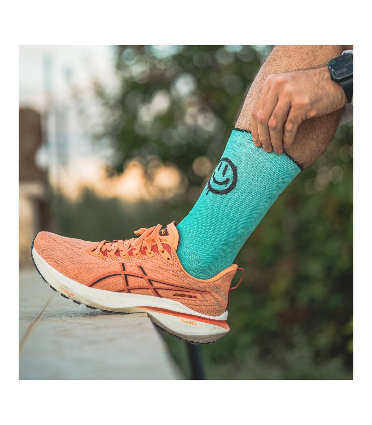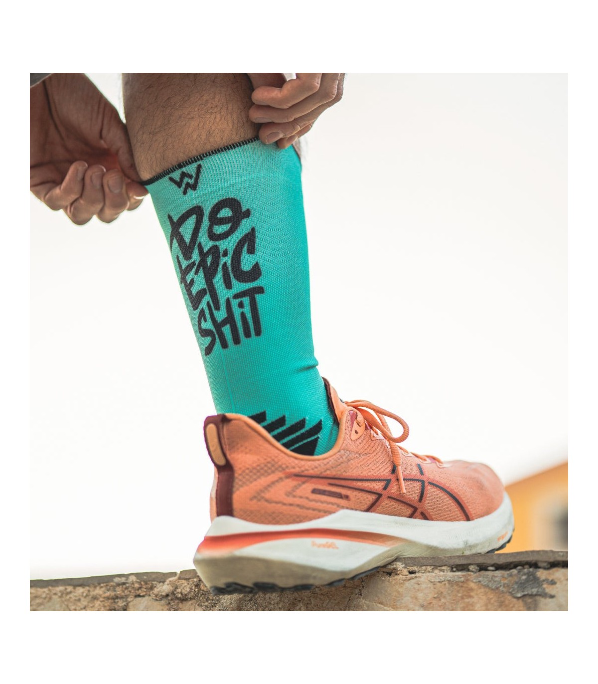 Calcetines deportivos turquesa con mensaje motivacional, cómodos y transpirables para tus entrenamientos.