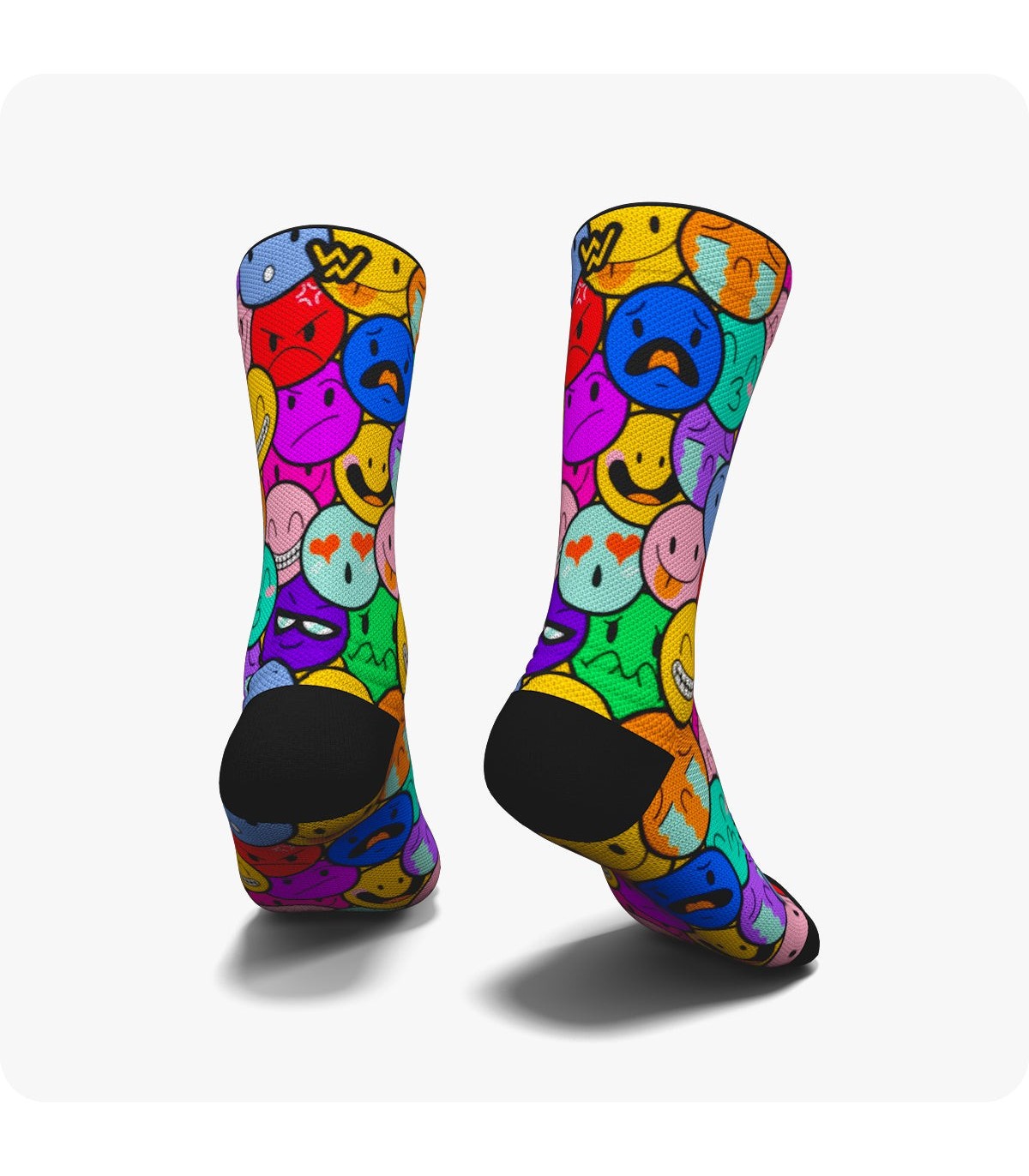 ¡Exprésate sin decir una palabra con los calcetines "Emojis" de Wabiks! Estos calcetines deportivos presentan divertidos emoticonos que añadirán un toque de humor a tus entrenamientos. Fabricados con una mezcla de poliéster de alto rendimiento, mantienen tus pies secos y cómodos durante todo el día.