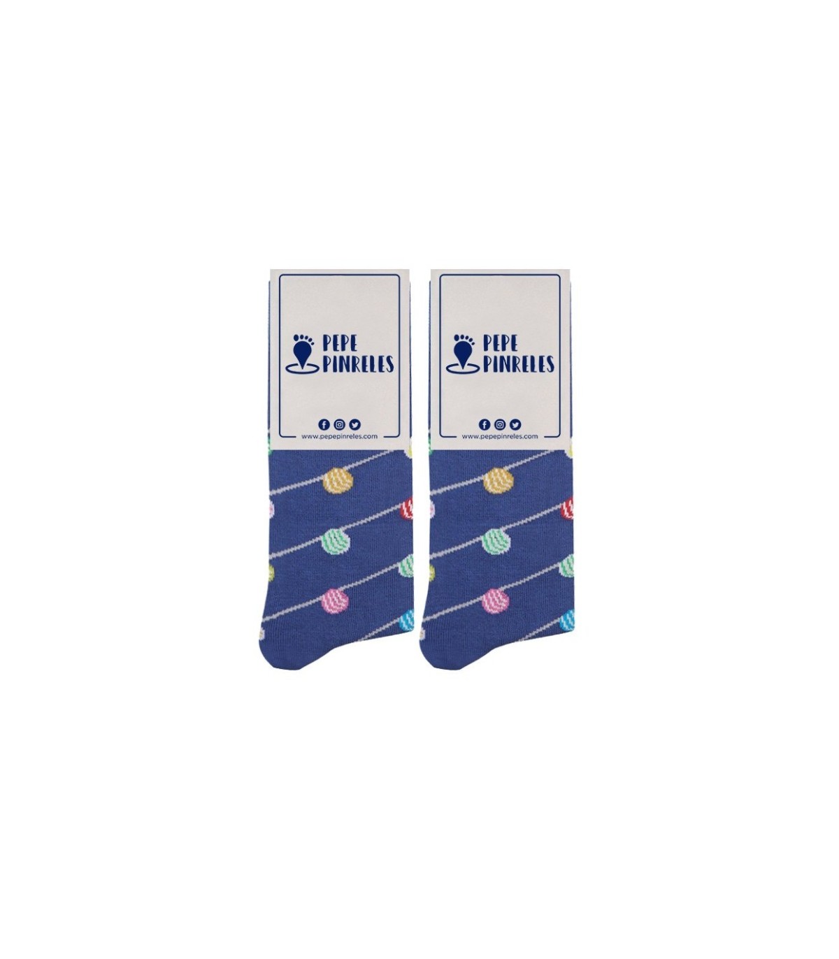 Calcetines con estampado de farolillos multicolores, ideales para añadir un toque festivo y alegre a tu vestimenta.