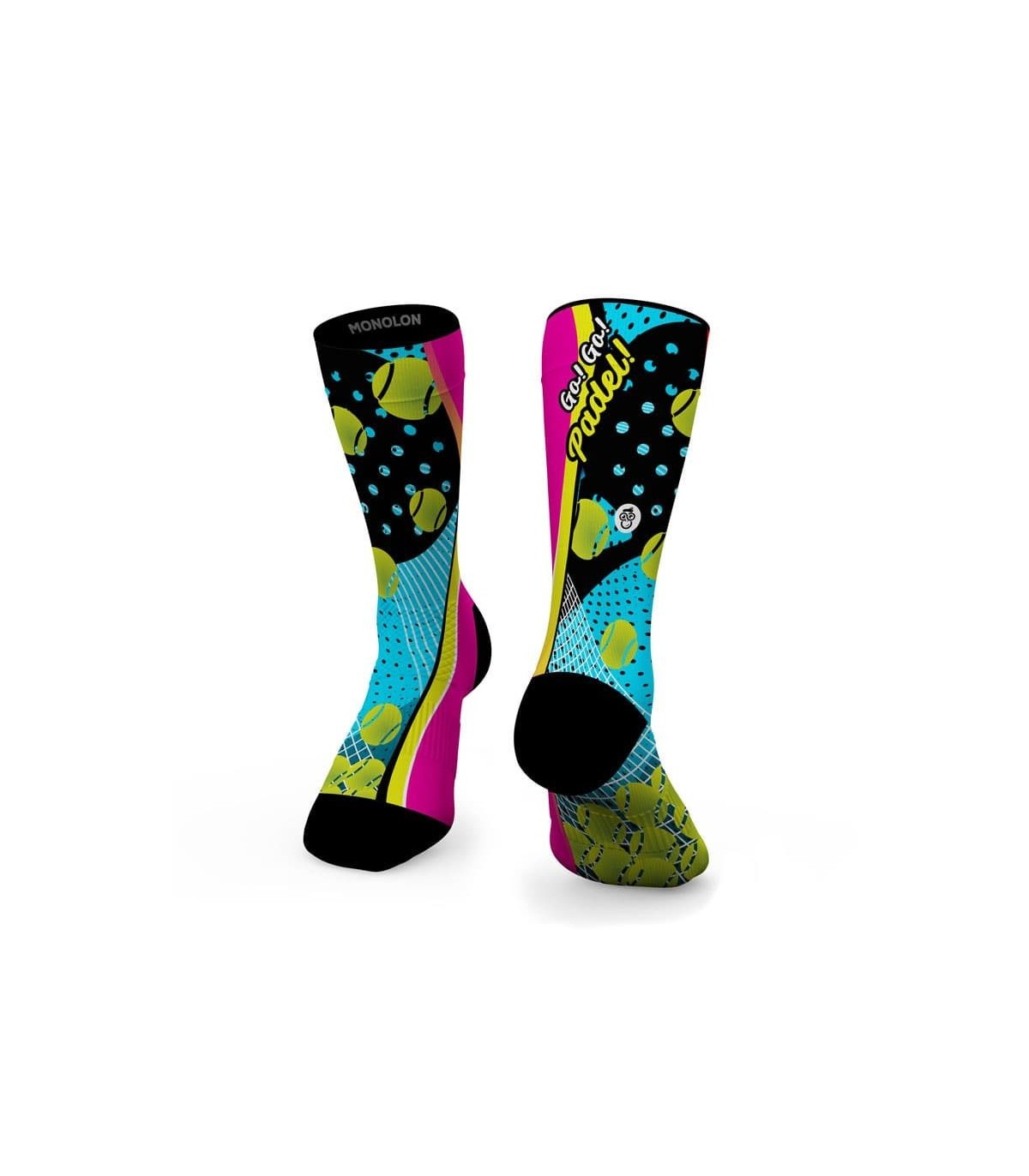 ¡Lleva tu juego de pádel al siguiente nivel con los calcetines "Go! Go! Padel! Fluor" de Monolon! Estos calcetines técnicos deportivos cuentan con una impresión 360º sin cortes, ofreciendo un diseño uniforme y llamativo en colores fluorescentes. El borde superior suave y elástico se ajusta sin presión, mientras que la estructura compresiva gradual ayuda al retorno venoso y mejora la oxigenación muscular. Talón y punteras reforzados para mayor comodidad, y sin costuras para evitar rozaduras.