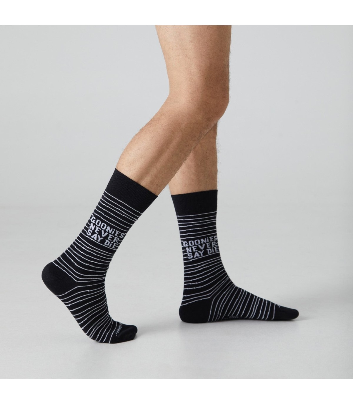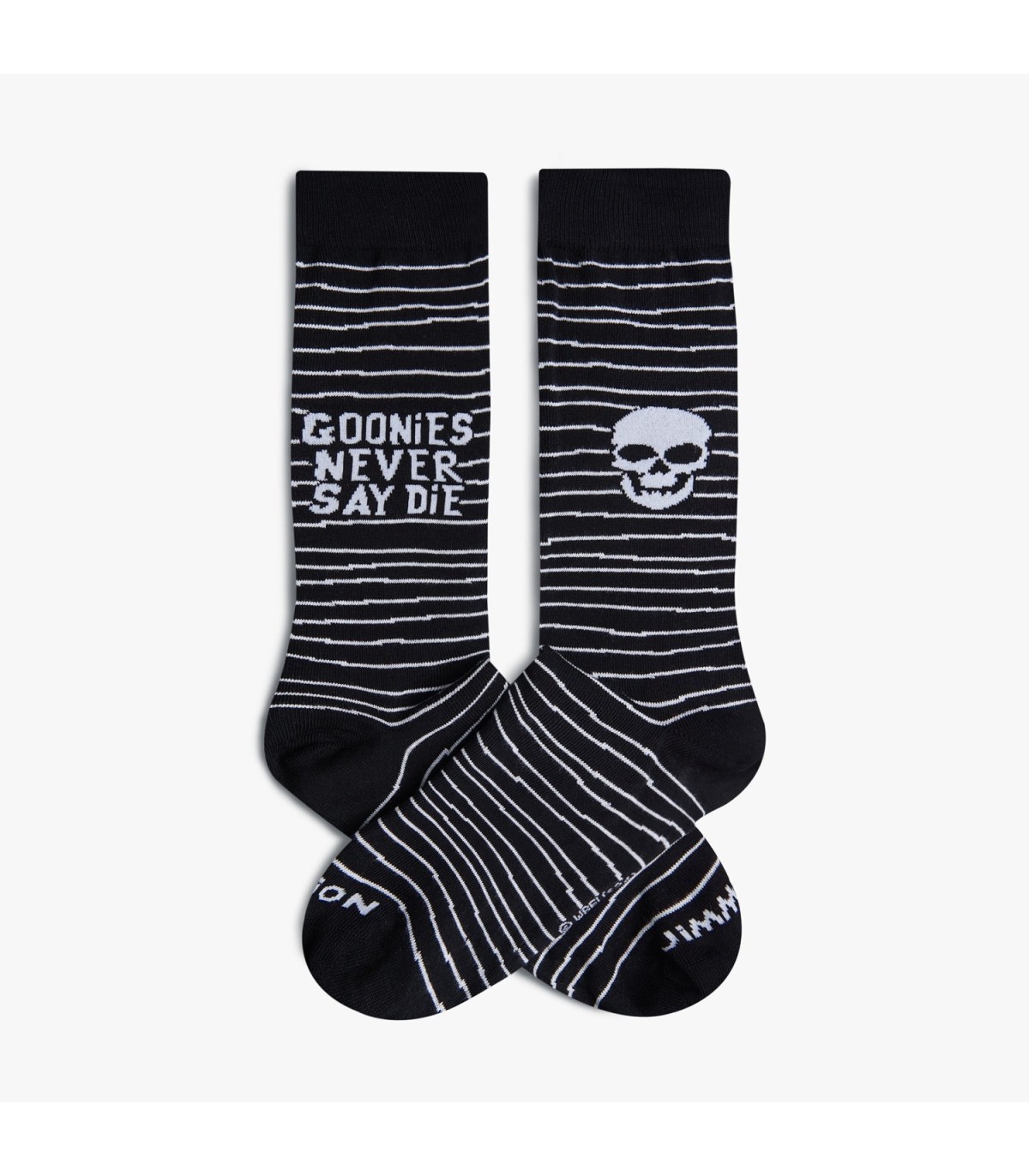 ¡Revive la aventura ochentera con los calcetines "Goonies Never Say Die" de Jimmy Lion! Inspirados en la icónica película 'Los Goonies', estos calcetines de media caña en color negro presentan ilustraciones y frases divertidas como "Goonies never say die", ideales para los verdaderos fanáticos que valoran la autenticidad en cada detalle.