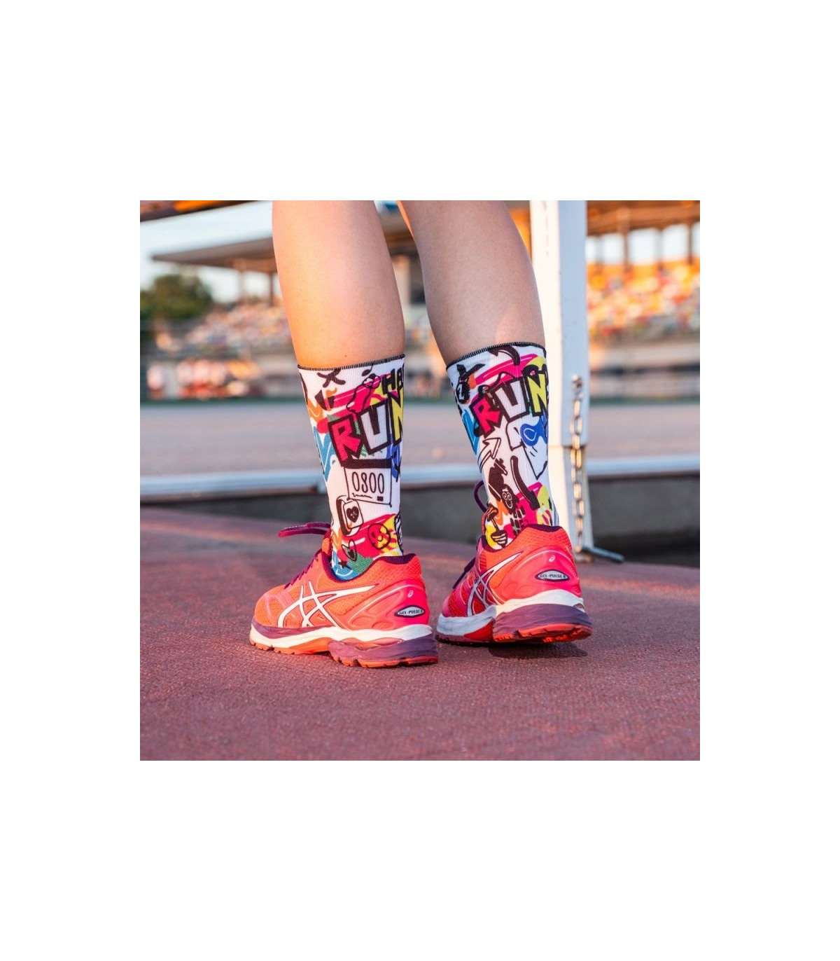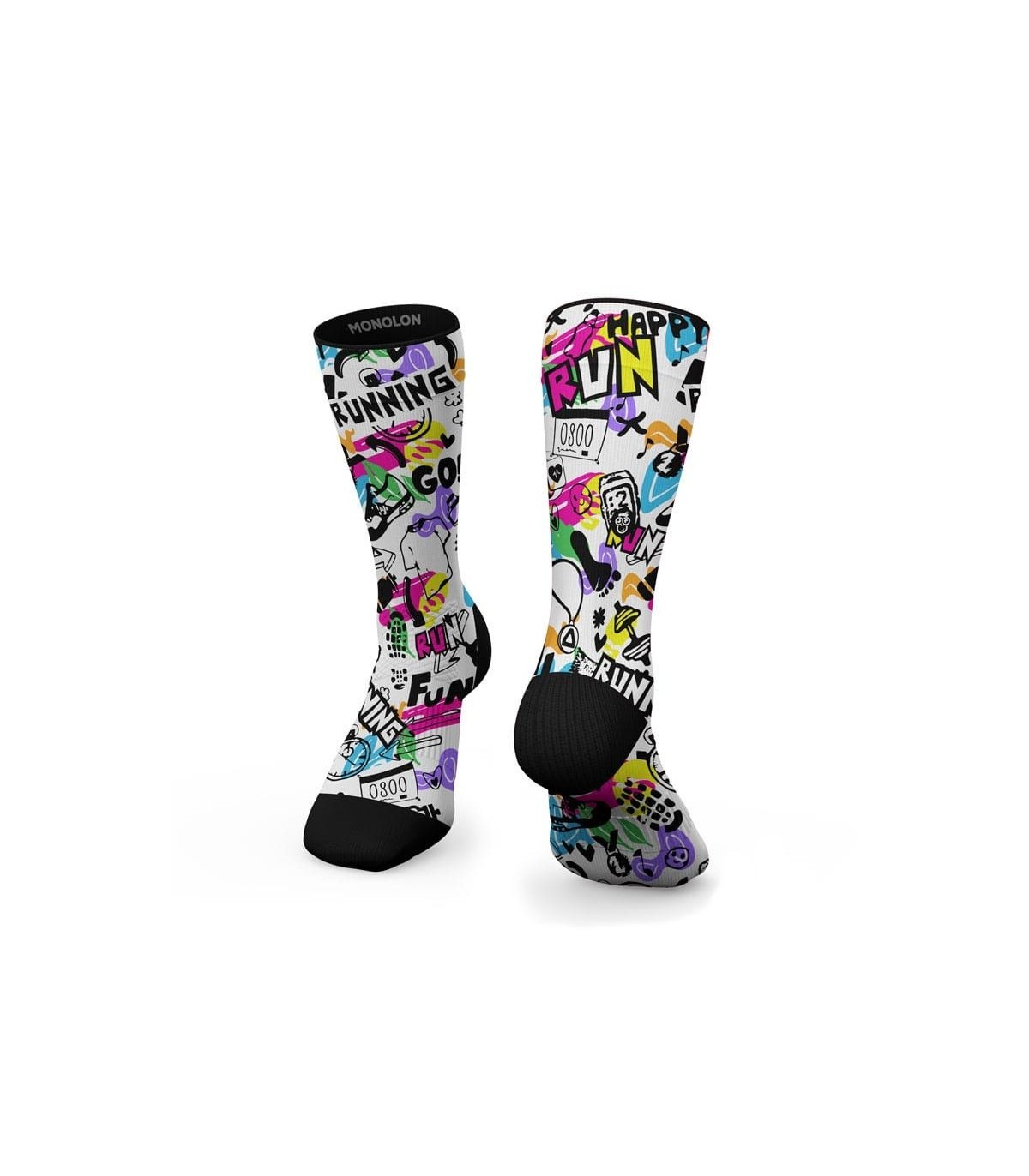 Calcetines de running con diseño alegre, impresión 360º, transpirables y personalizables.