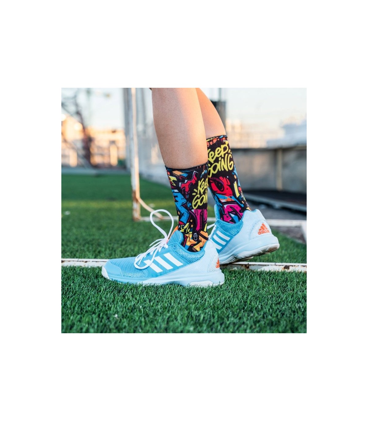 Calcetines deportivos con diseño motivador "Keep Going", cómodos y personalizables.