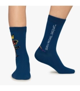Calcetines deportivos de media caña que combinan el símbolo de Batman con el arte de Basquiat, ofreciendo un diseño único y llamativo.