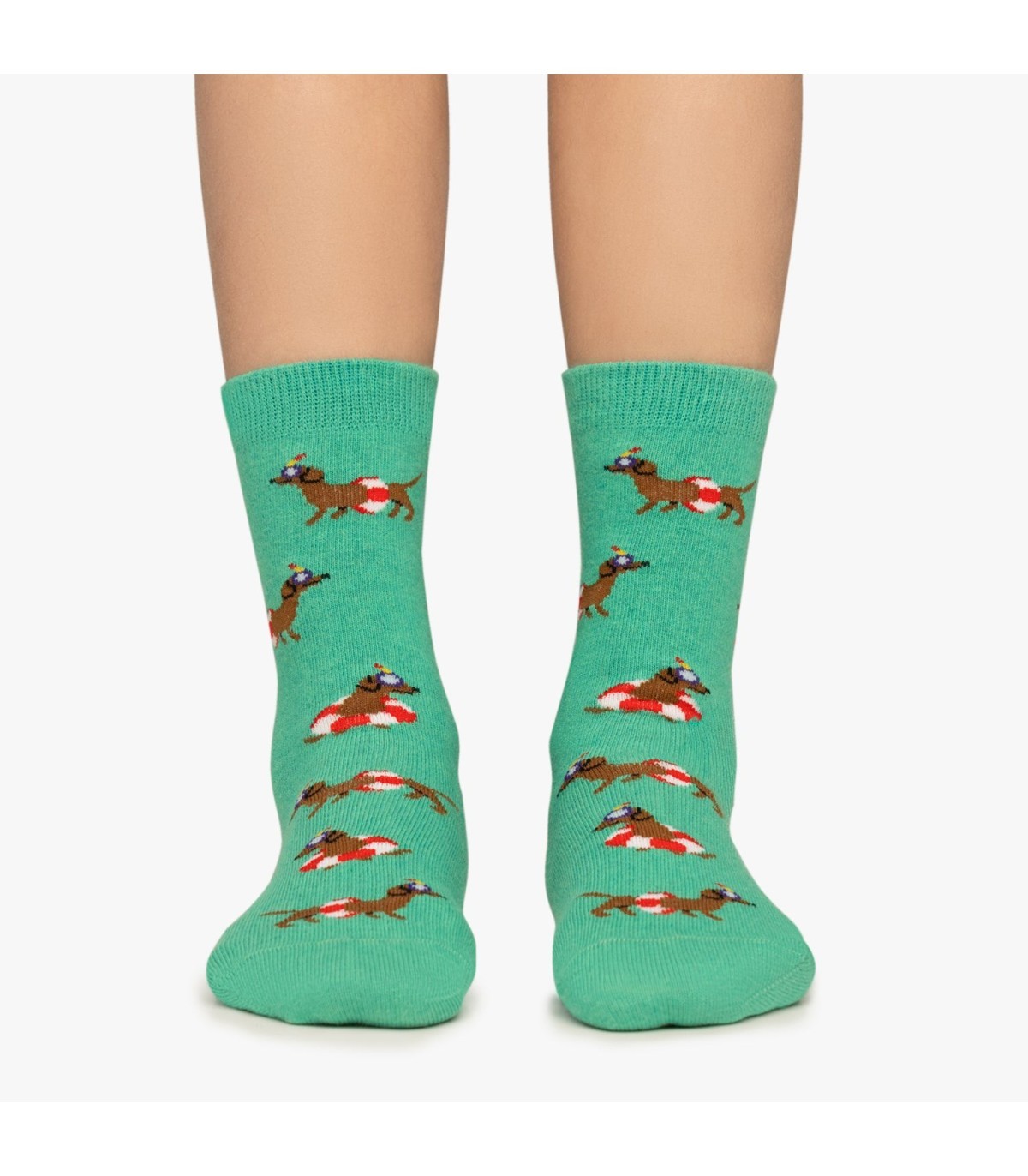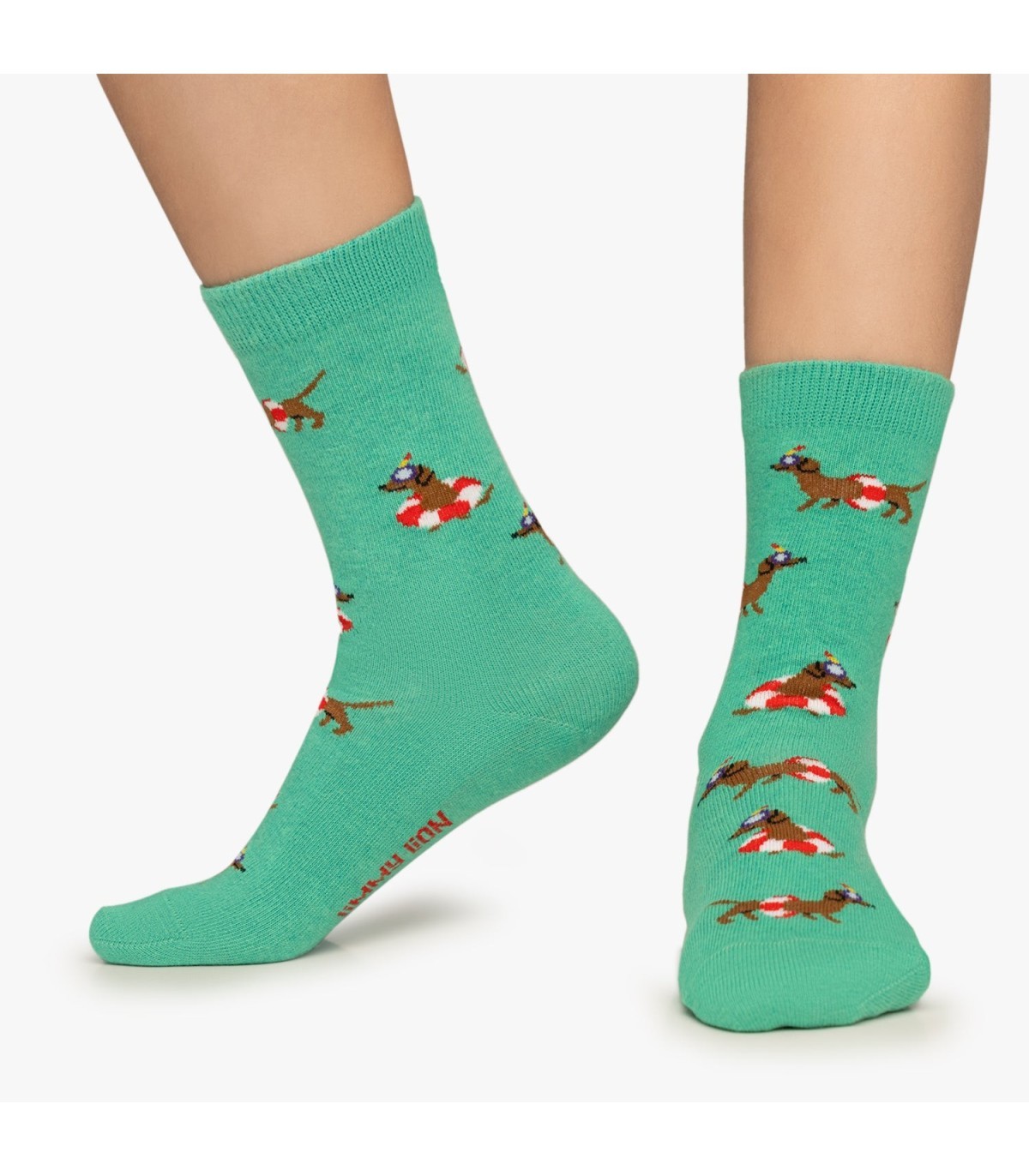¡Lleva el espíritu veraniego a los pies de tus pequeños con los calcetines "Lifeguard Dog" de Jimmy Lion! Estos calcetines presentan un adorable perro salchicha equipado con flotador y gafas de buceo, listo para la diversión en la playa. Confeccionados con 80% de algodón peinado, garantizan suavidad y comodidad para los niños.