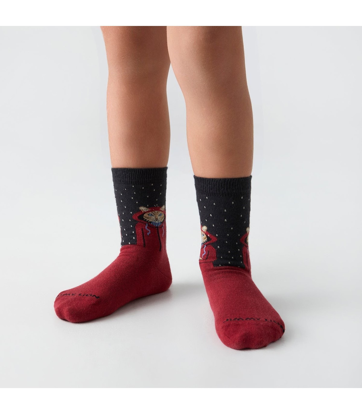 ¡Los días lluviosos nunca fueron tan divertidos! Con los calcetines "Kids Raining Cat" de Jimmy Lion, tus peques llevarán un simpático gatito encapuchado disfrutando de la lluvia. Estos calcetines de media caña, en tonos grises y granates, están confeccionados con 80% de algodón orgánico, ofreciendo suavidad y comodidad para los más pequeños.