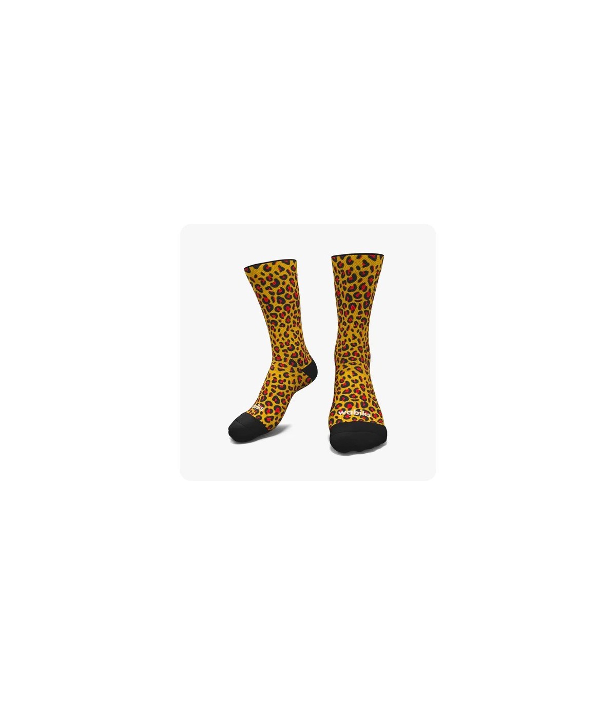 Calcetines deportivos con estampado de leopardo, de máxima su sujeción, termorreguladores, rejilla de ventilación y zonas de refuerzo.