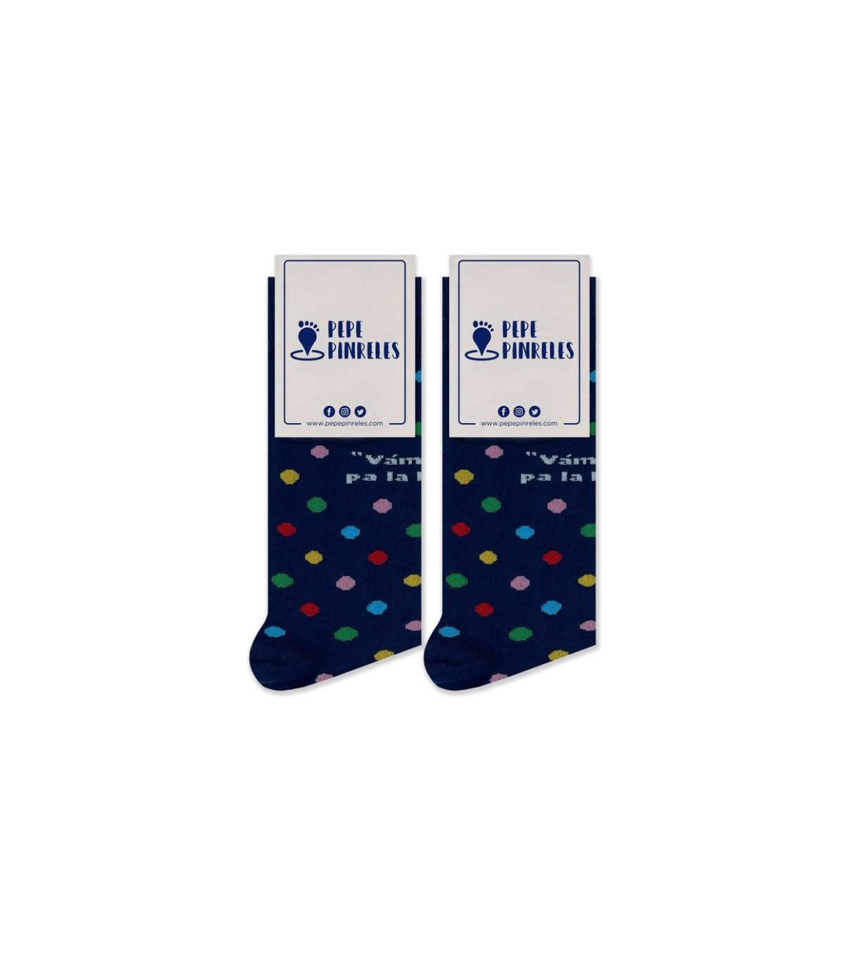 ¡Añade un toque de alegría y tradición a tu vestuario con los calcetines de lunares de Pepe Pinreles! Estos calcetines presentan un diseño clásico de lunares multicolores sobre un fondo azul marino, evocando el espíritu festivo de las ferias andaluzas. Fabricados con una mezcla de 85% algodón, 1% poliamida y 3% elastano, ofrecen una comodidad excepcional y un ajuste perfecto. Ideales para quienes desean llevar consigo un pedacito del sur en su día a día.