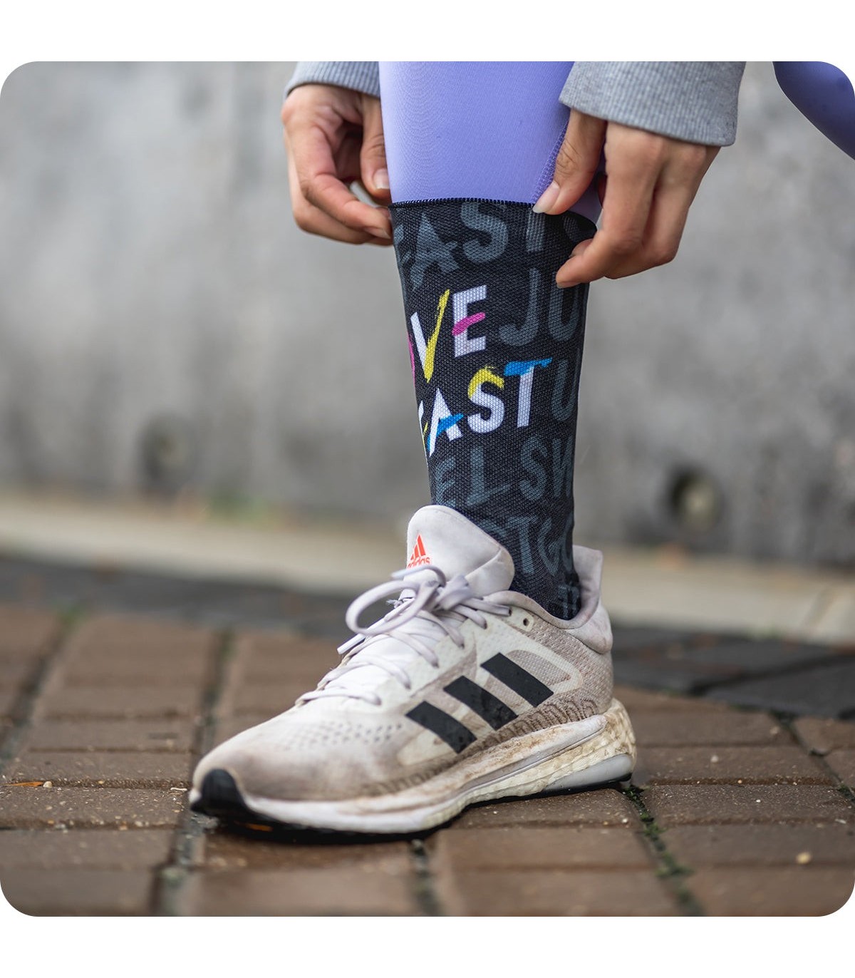 Calcetines deportivos negros con mensaje motivacional, cómodos y transpirables para tus entrenamientos.