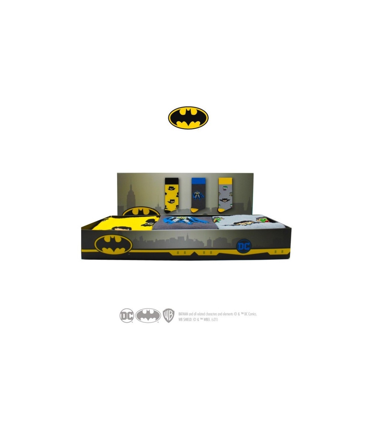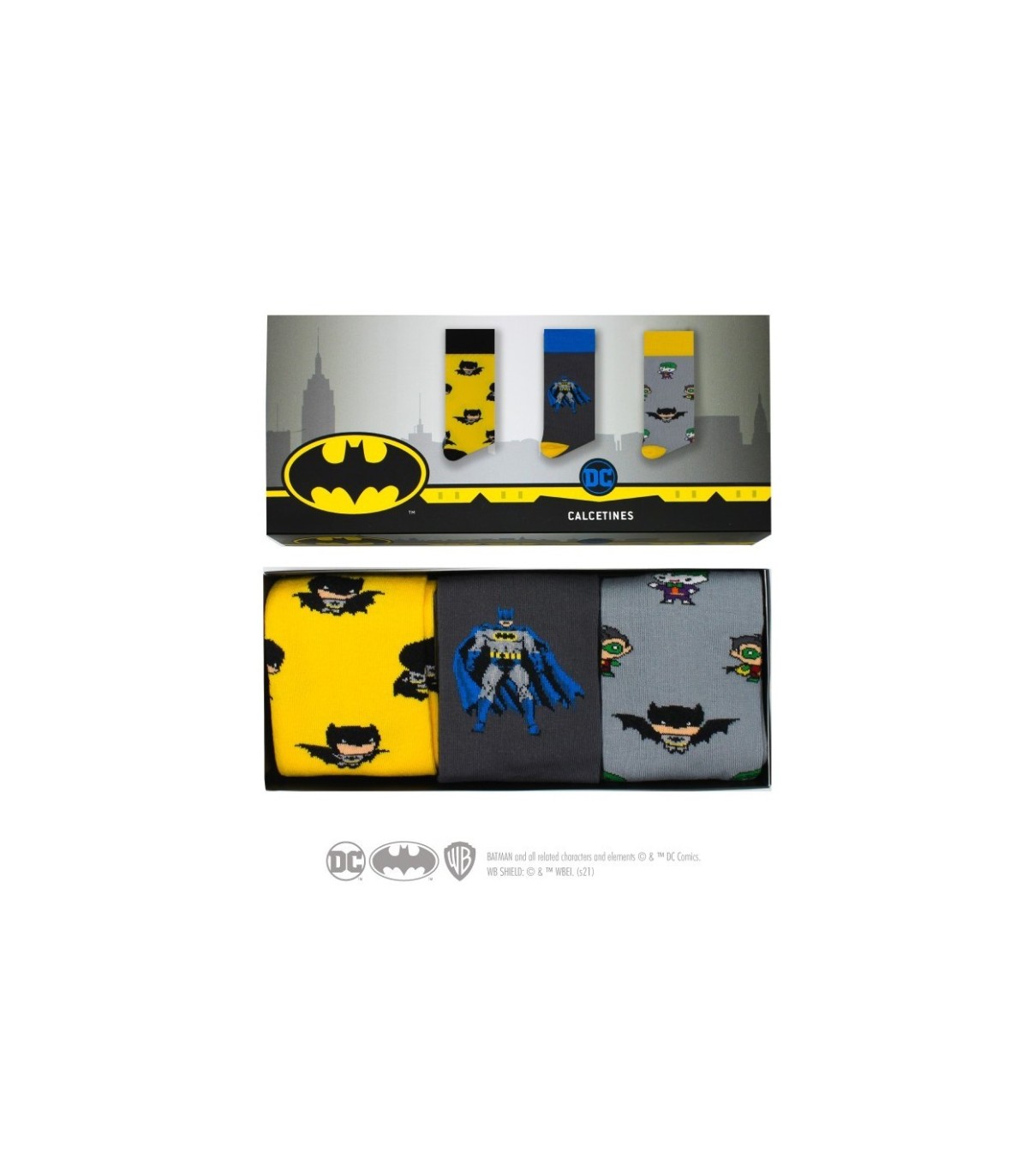 Pack de 3 calcetines oficiales de Batman, cómodos y transpirables, ideales para fans del superhéroe.
