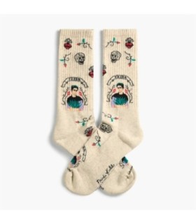 Calcetines deportivos de media caña inspirados en Frida Kahlo, con diseños florales y colores vivos que celebran la cultura mexicana.