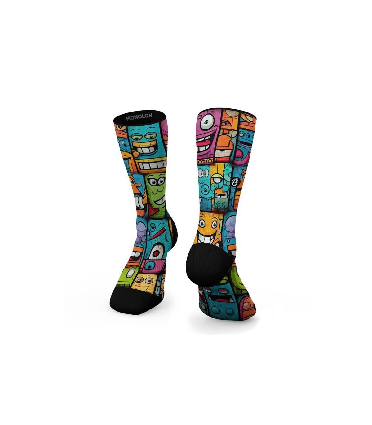 Calcetines deportivos con diseño de pegatinas, coloridos y cómodos para tus entrenamientos.